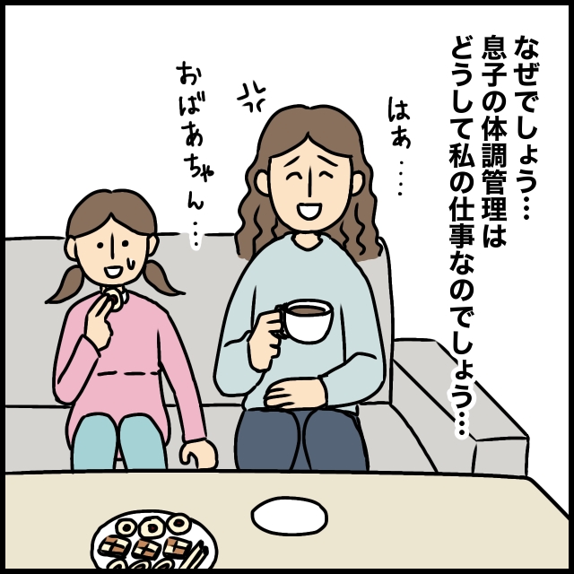 はぁ・・。息子の体調管理は私の仕事だと決めつけているのはなぜでしょう・・。本当もうため息しか出ません。