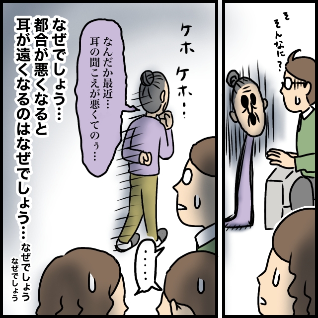 かと思うと突然立ち上がり、「なんだか最近・・耳の聞こえが悪くてのぅ・・」そう言ってどこかへ行ってしまう義母を見て言葉を失う私たち。
