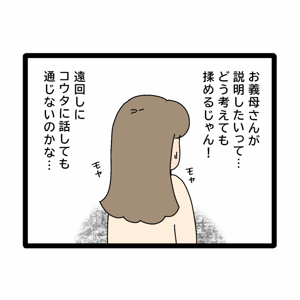お義母さんからお金のことで説明すると呼ばれたアヤカさんはモヤモヤしていました。「お義母さんが説明したいって・・・どう考えても揉めるじゃん!遠回しにコウタに話しても通じないのかな。」今後もコウタさんの給料を義母が管理することで、二人の旅行や生活費まで口を出されるのは絶対阻止したいアヤカさんです。