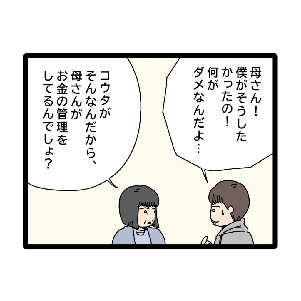 「母さん!僕がそうしたかったの!何がダメなんだよ・・」義母の言葉にコウタさんが反論すると、「コウタがそんなんだから、母さんがお金の管理をしてるんでしょ?」と義母が言い、