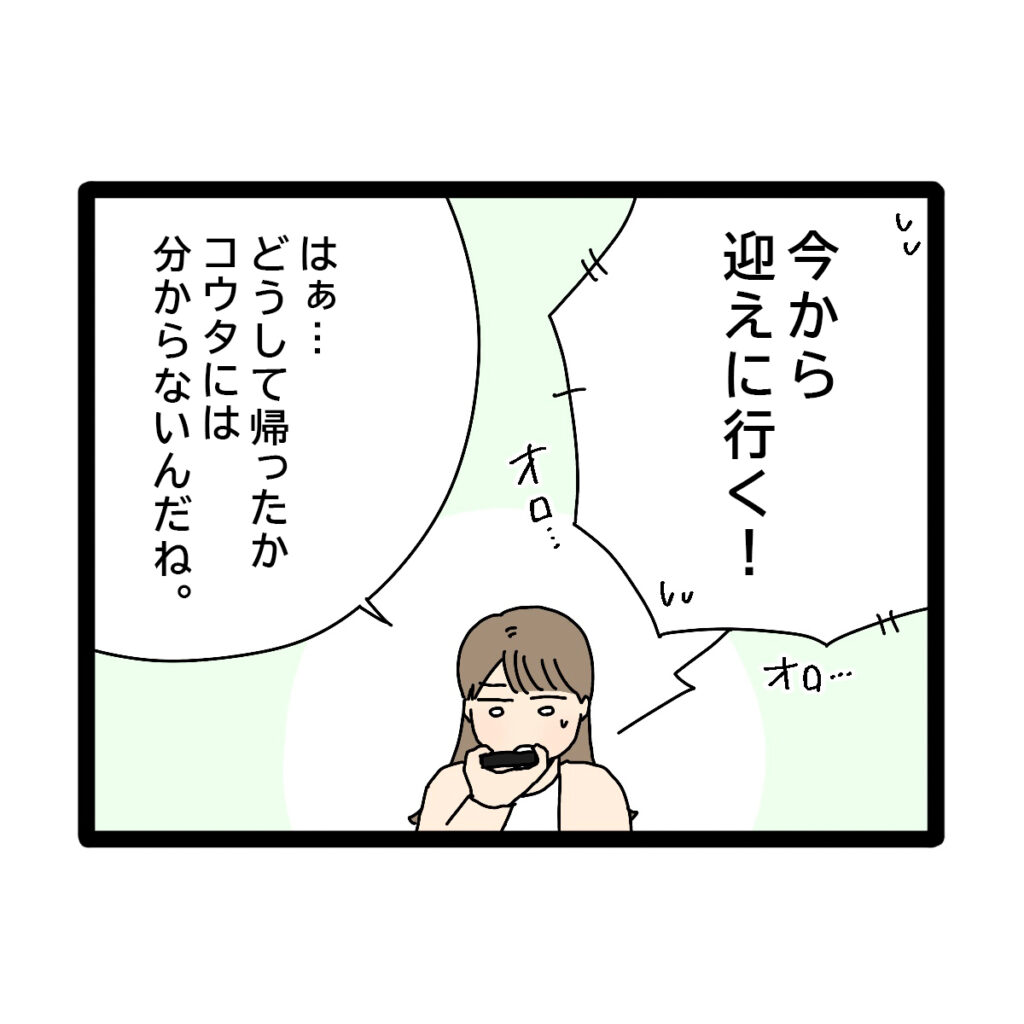 「今から迎えに行く!」と慌てふためくコウタさんに、アヤカさんは溜息まじりに「はぁ・・どうして帰ったかコウタには分からないんだね」と呆れ顔。