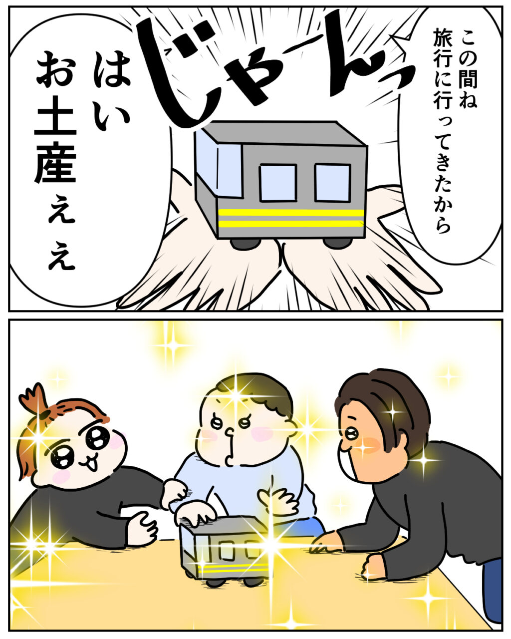 義母は「欲しい子が貰ってね~」と満足そうですが、子どもたちはおもちゃを巡って争奪戦。義母がお土産を買ってくるといつもこう。子どもは3人いて、喧嘩になるのは目に見えてるのに、なぜかいつも1つだけしか買ってこないのです。