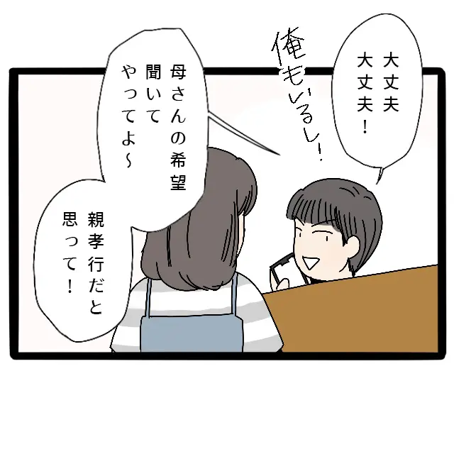 「大丈夫大丈夫!俺もいるし!母さんの希望聞いてやってよ~。親孝行だと思って!」とやっぱり軽い感じで言われてしまいました。