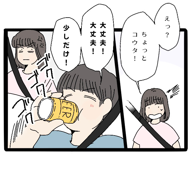 「えっ?ちょっとコウタ!」私が驚いて声をかけるも、「大丈夫!大丈夫!少しだけ!」そう言いながら、一気に飲み干しそうな勢いで飲み始め、私は怒りがこみ上げました。
