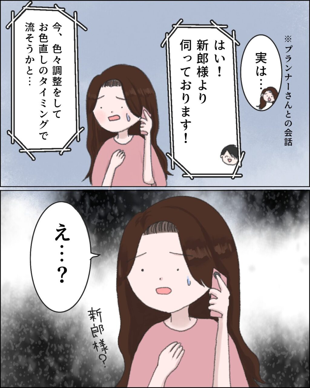 バッと良太の顔を見ると、気まずそうに視線を逸らした良太。怒りを抑えながらプランナーさんに「・・私、今知りました」と伝えると、プランナーさんは「えぇ!?」と驚愕。まさか新郎の独断だったなんてプランナーさんも思ってもいなかったのでしょう。