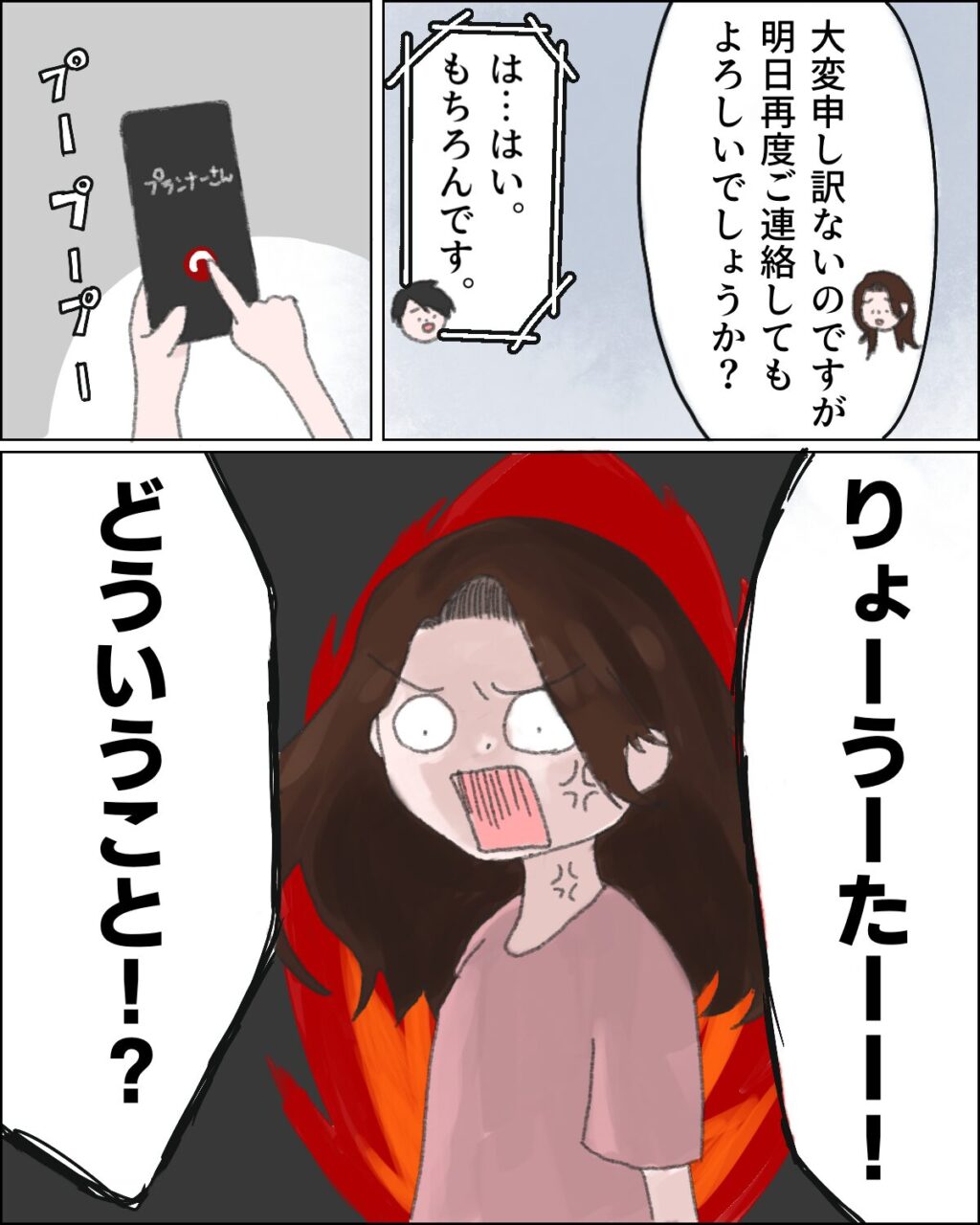 私は「大変申し訳ないのですが、明日再度ご連絡してもよろしいでしょうか?」とプランナーさんに伝え、了承を得て電話を切りました。そして「りょーうーたーー!どういうこと!?」抑えていた怒りを一気に解き放ち良太を問いただしました。