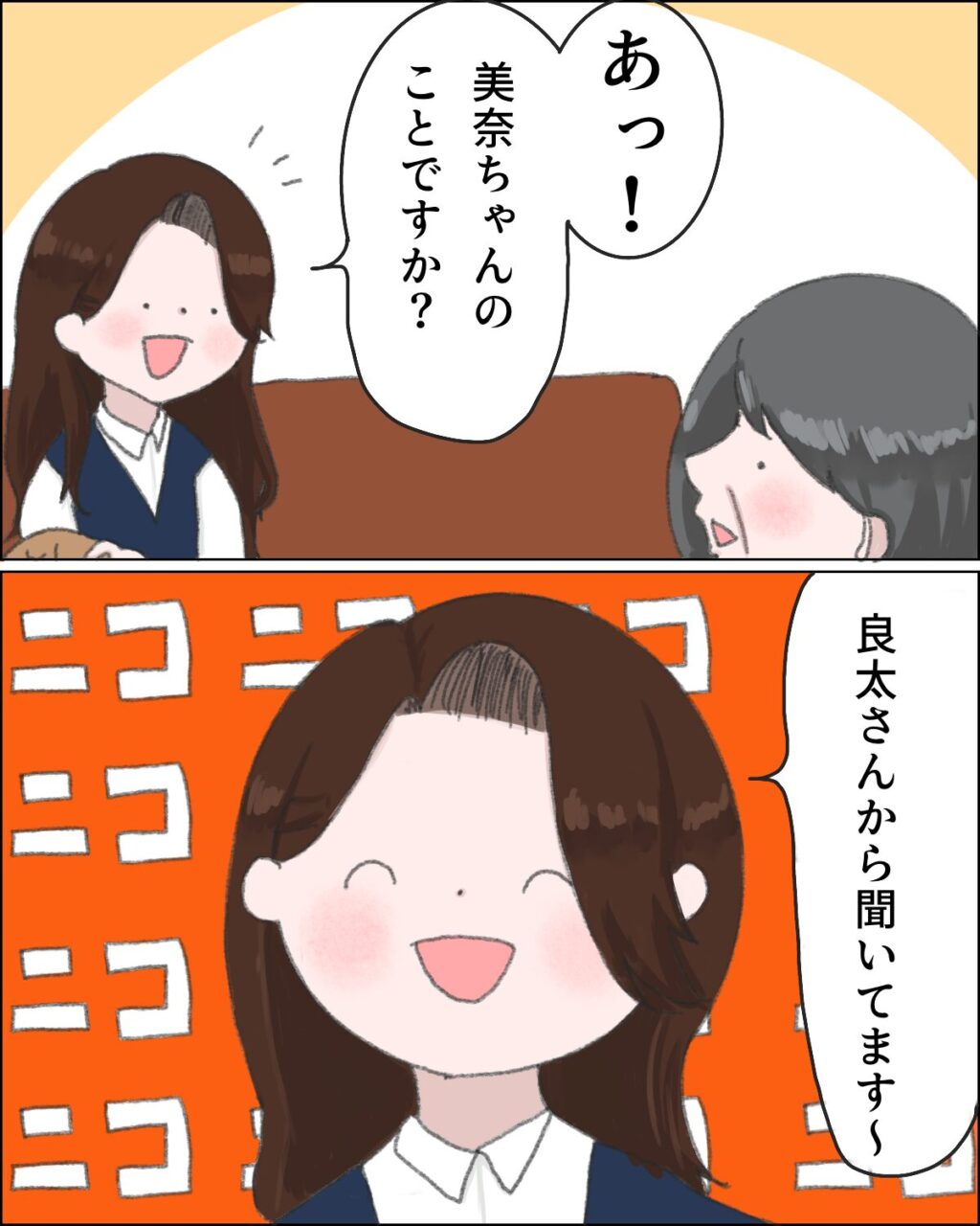 「あっ!美奈ちゃんのことですか?良太さんから聞いてます~」と笑顔で答えると、