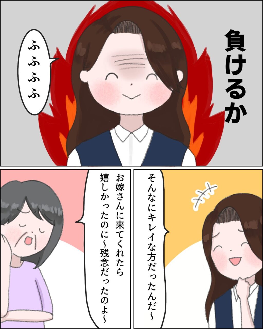 そして「負けるか」と思いながら「ふふふふ」と呟いた後、「そんなにキレイな方だったんだ~」と笑顔で言うと、「お嫁さんに来てくれたら嬉しかったのに~。残念だったのよ~」義母の言葉を聞いて、