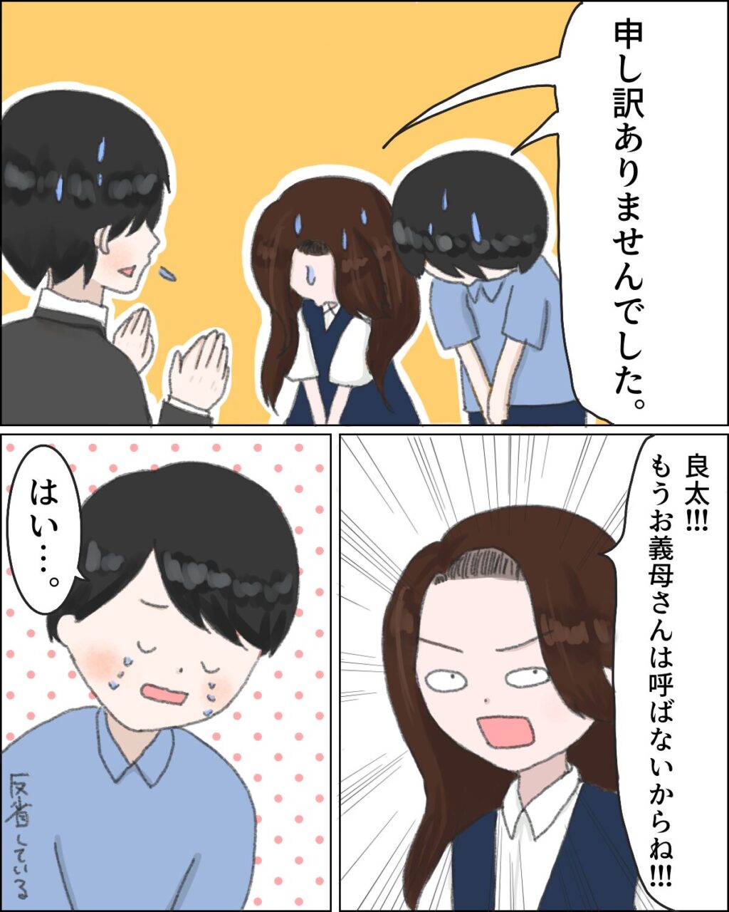 「良太!!!もうお義母さんは呼ばないからね!!!」と言い切ると、「はい・・」と涙を流して反省する良太なのでした。