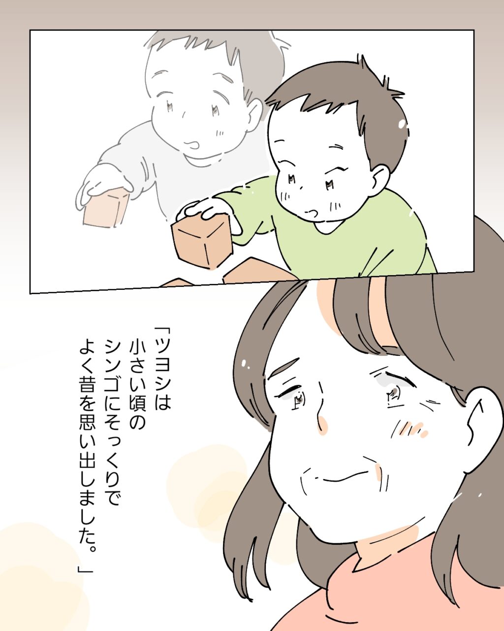 義母からの手紙には[ツヨシをよく家につれてきてくれてありがとう。かわいい笑顔を見るたび元気がでました。ツヨシは小さい頃のシンゴにそっくりで、よく昔を思い出しました。]と書かれていました。