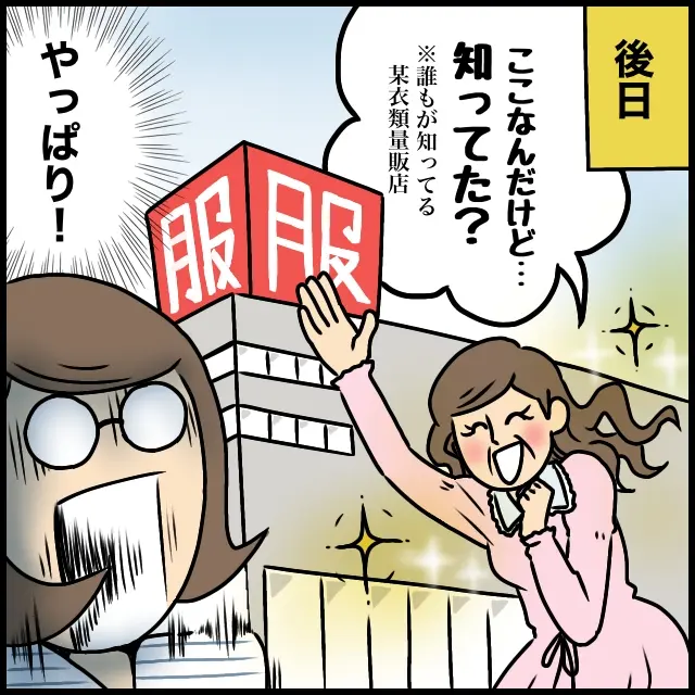 案の定、嬉しそうに義母が案内してくれたお店は、誰もが1着は持っているんじゃないかと思われる超有名な某衣類量販店。やっぱり!と思いました。お友達に教えてもらうまで、このお店の存在を知らなかったとは。逆にすごくない!?と驚きました。それでもとにかく義母は嬉しそうです。