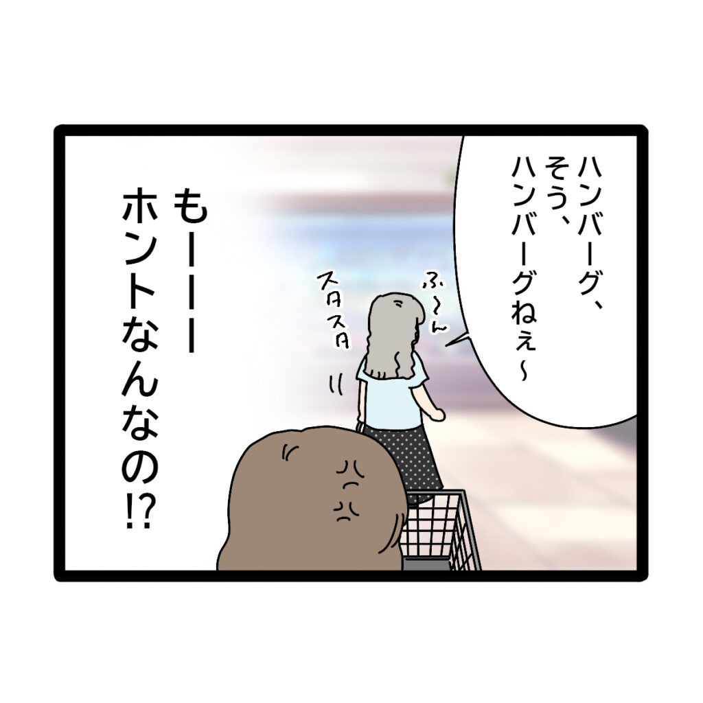 すると、「ハンバーグ、そう、ハンバーグねぇ~」そう言いながらスタスタ歩き出す義母の背中を見て、「もーーーホントなんなの!?」とイライラがおさまりませんでした。