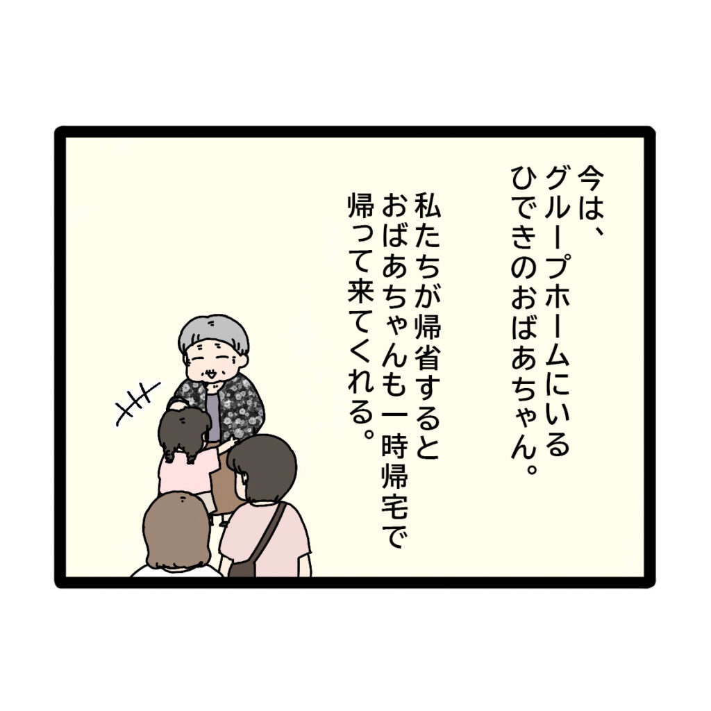 夫ひできのおばあちゃんです。今はグループホームで暮らしていますが、私たちが帰省すると、おばあちゃんも一時帰宅で帰ってきてくれるのです。