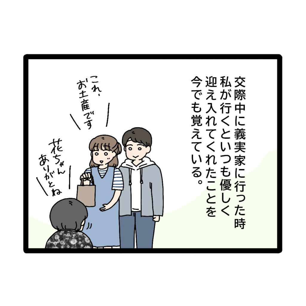 わたしが夫と交際中に義実家に行った時、いつも優しく迎えい入れてくれたことを今でも覚えています。