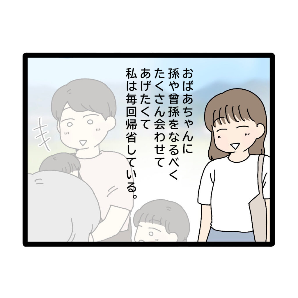 大好きなおばあちゃんに孫や曾孫をなるべくたくさん会わせてあげたいという気持ちで、私は毎回帰省しているのです。