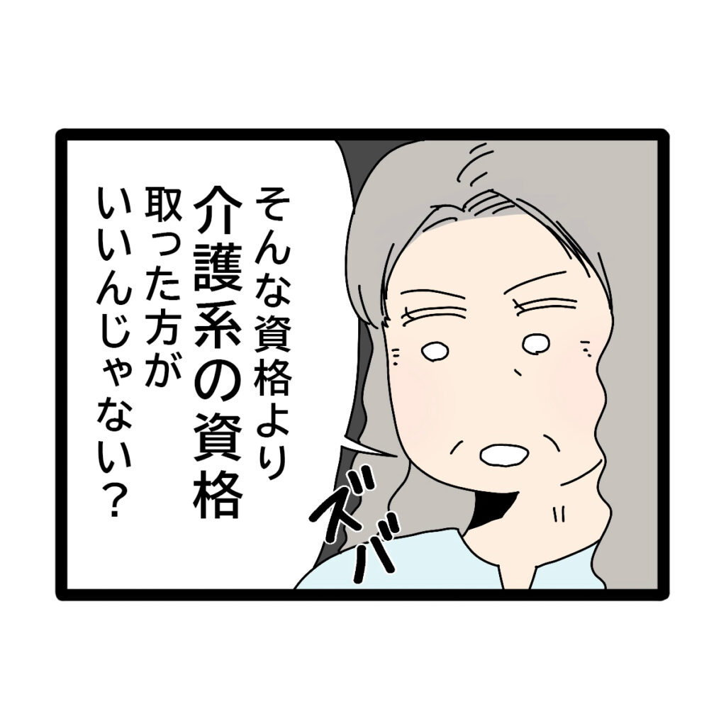 「そんな資格より介護系の資格取った方がいいんじゃない?」と具体的なことを言い出す義母。
