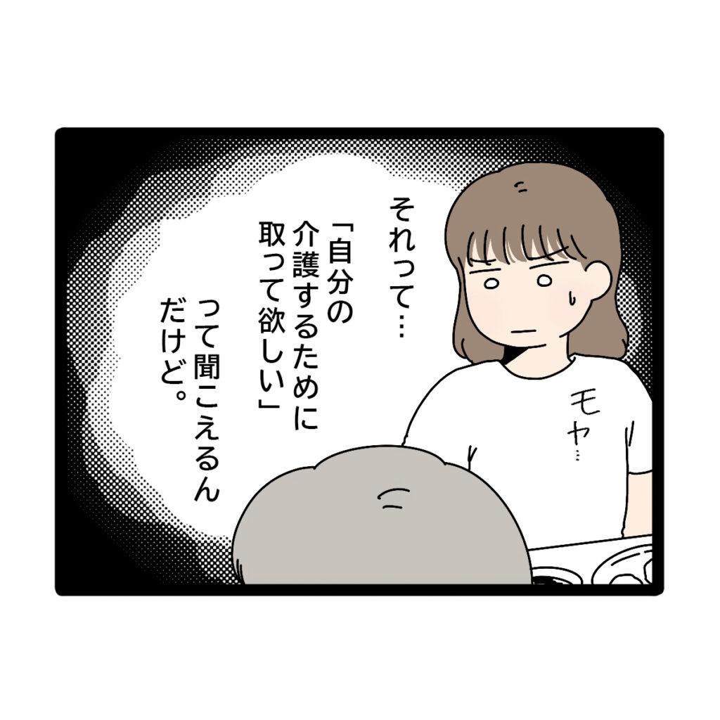 「それって・・『自分の介護するために取って欲しい』って聞こえるんだけど」とモヤモヤが止まりませんでした。