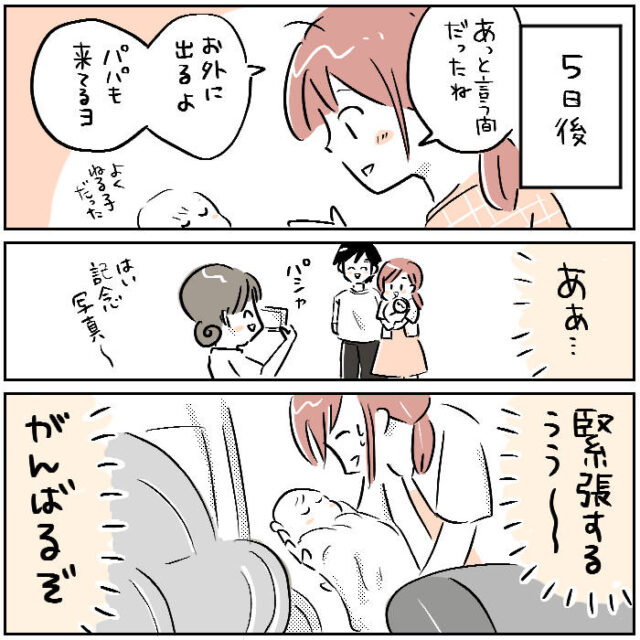「あっという間だったね。これからお外に出るよ。パパもいるよ」
