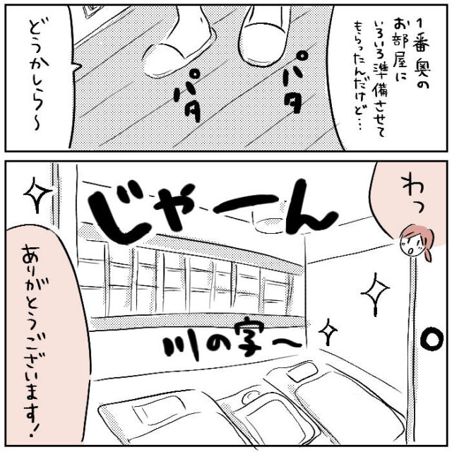 と通された部屋はキレイに片付いていて、すでに「川の字」に敷かれたお布団が!