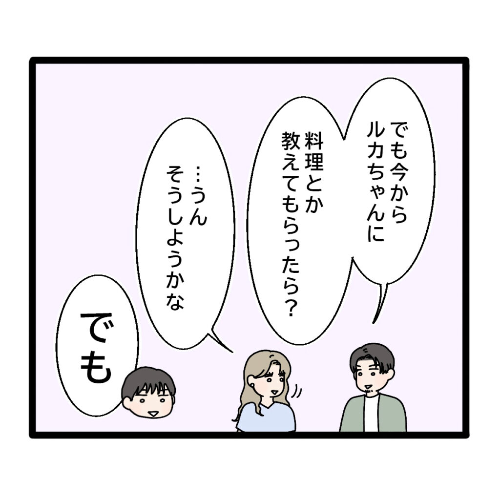 「でも今からルカちゃんに料理とか教えてもらったら?」とアサヒに言われた私は、複雑な気持ちを抱きつつも笑顔で「・・うん、そうしようかな」と笑顔で答えました。すると、リョウが「でも」と口を開きました。