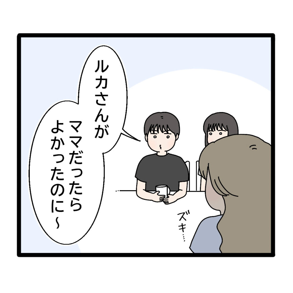 義実家にいる間、みんなの話題の中心にいたのはルカさんでした。そして、それはルカさんが帰ってからも続きました。夫のアサヒさんは「ほんと気が利くよな」とルカさんを褒め、娘のサクラちゃんは「ルカさんみたいな人になりたい。勉強もできるし優しいし、完璧!」と目を輝かせ、息子のリョウくんからは「ルカさんがママだったらよかったのに」とまで言われてしまったユキさん。