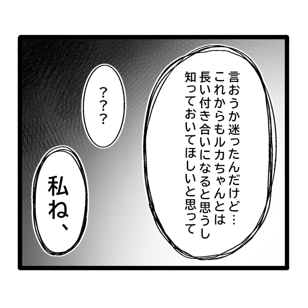 「言おうか迷ったんだけど・・・これからもルカちゃんとは長い付き合いになると思うし、知っておいてほしいと思って。」と、ユキさんはすごい秘密があるような言い方をしてきました。いやな予感。