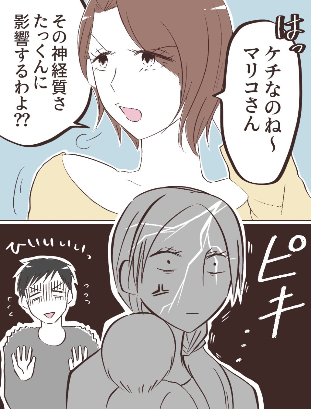 すると、「はっ!ケチなのね~マリコさん。その神経質さ、たっくんに影響するわよ??」と捨て台詞のように言われ「ピキ・・」私の中で何かが切れました。