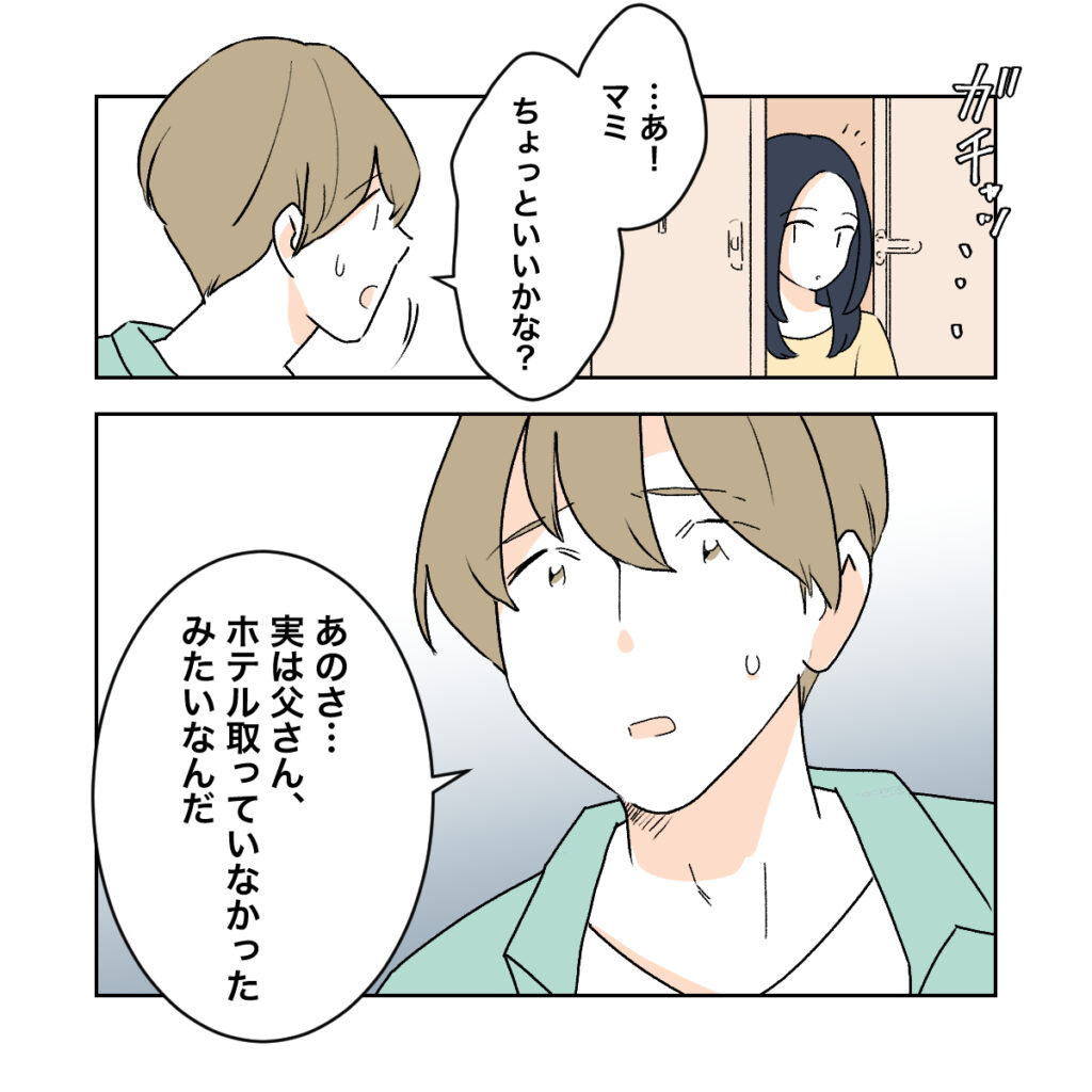 そして部屋に戻ると、「・・あ!マミ、ちょっといいかな?」ショウタはそう言うと、「あのさ・・実は父さん、ホテル取っていなかったみたいなんだ」と深刻そうに言いました。