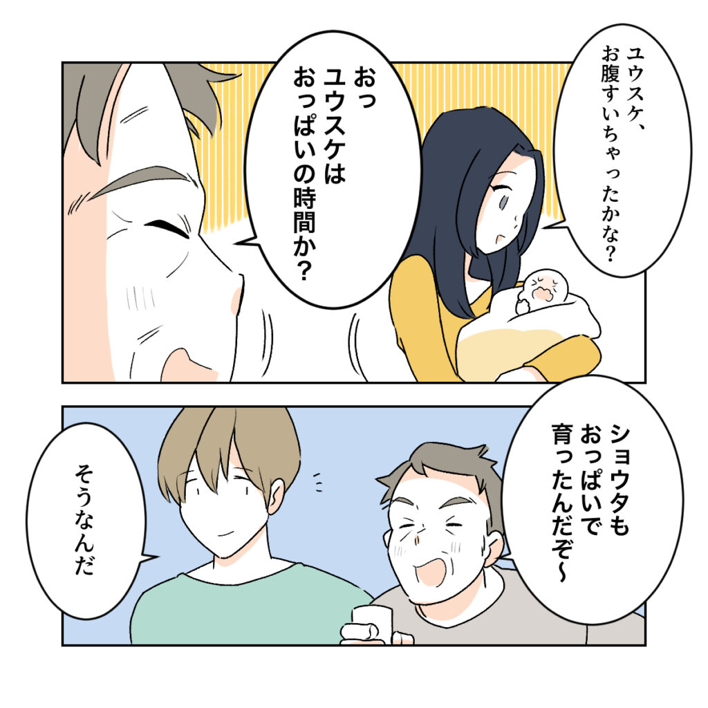「ユウスケ、お腹空いちゃったかな?」私が泣いているユウスケに声をかけると、横から義父が「おっユウスケはおっぱいの時間か?」と聞いてきました。「ショウタもおっぱいで育ったんだぞ~」と、昔話を始めるかと思いきやー・・・。