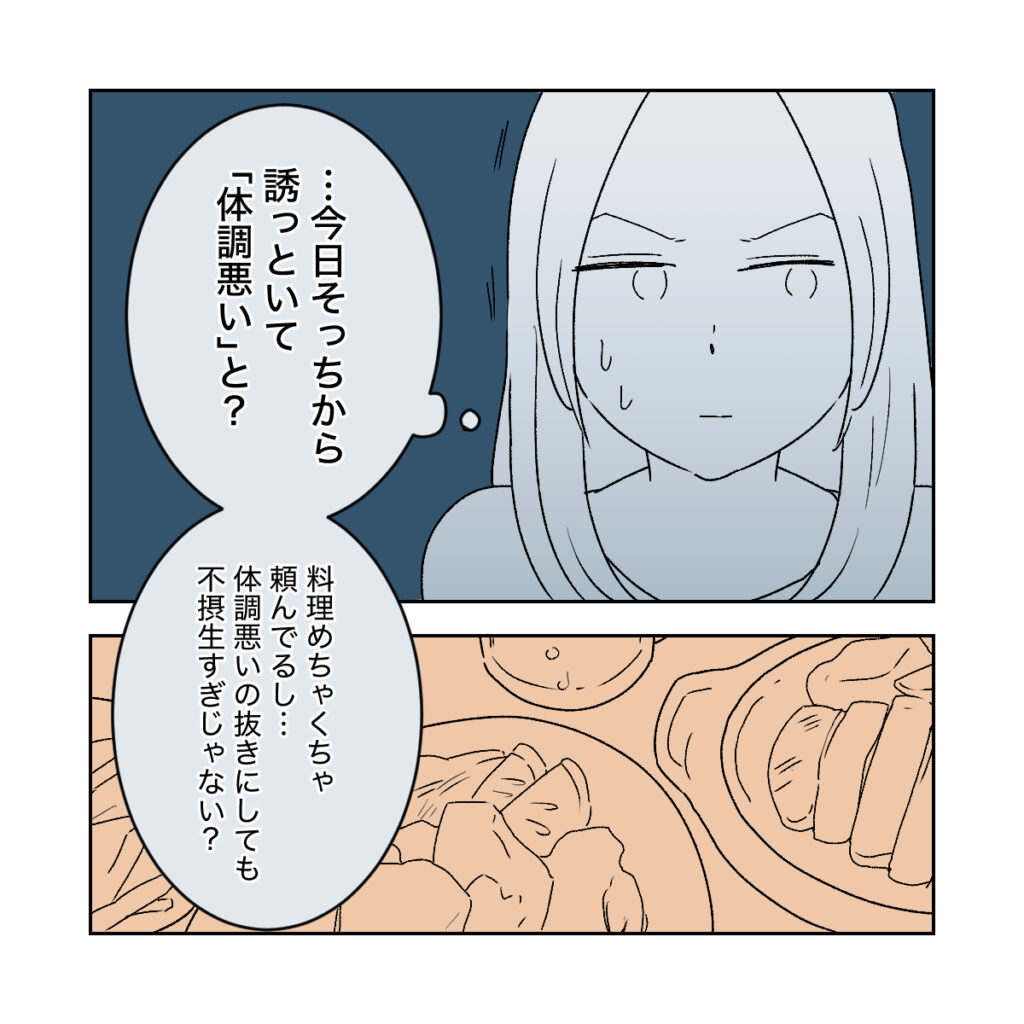 私は「・・今日そっちから誘っといて『体調悪い』と?料理めちゃくちゃ頼んでるし・・体調悪いの抜きにしても不摂生しすぎじゃない?」と義父の言葉に不信感を抱いたのですが、