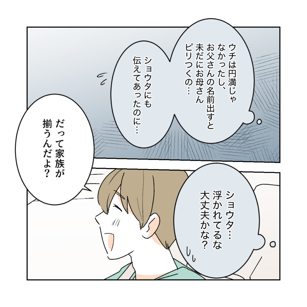 義母にはちゃんと話すから大丈夫と軽く言うショウタは、父は呼ばないと決めている私にまで「マミのお父さんも読んだら?」と言ってきました。父親との再会がよほど嬉しかったのか、私にも「せっかくだから聞いてみたらいいのに」と言うのです。