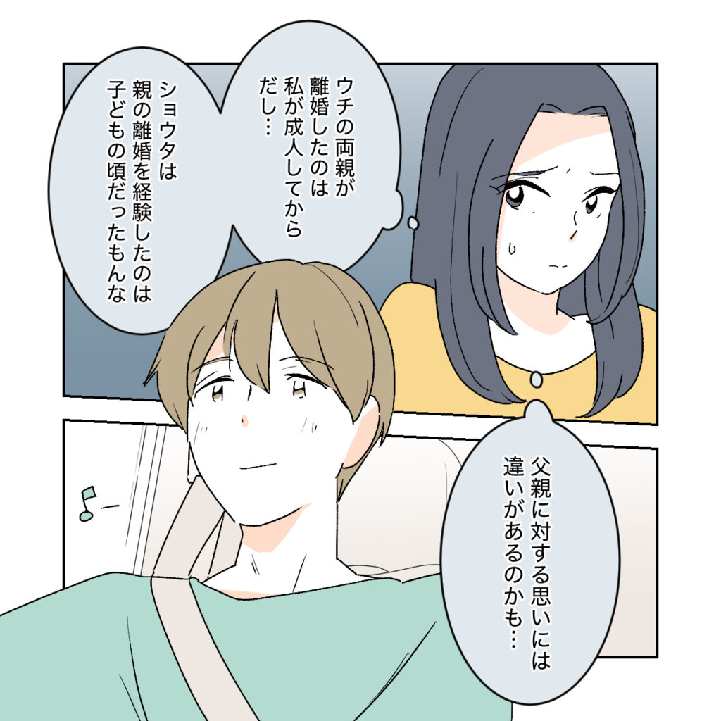 もしかしたら、子どもの頃に父親がいなくなってしまったショウタと、成人してから納得して両親の離婚を受け止めた私とでは父親に対する思いに違いがあるのかもしれません。ショウタの気持ちになろうと努力してみたものの、不安しかありませんでした。