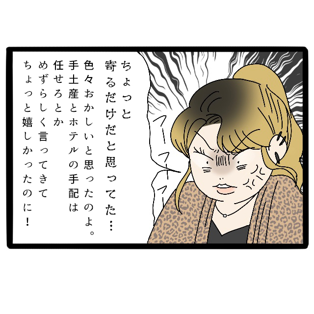 「ちょっと寄るだけだと思ってた・・。色々おかしいと思ったのよ。手土産とホテルの手配は任せろとか、めずらしく言ってきてちょっと嬉しかったのに!」と今にも怒りが爆発しそうなサチさん。ここで初めてサチさんが何も知らずに来ていたことを察した私。