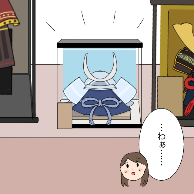 五月飾りを見るためお店に着くと、「これ、どうかしら??こっちもいいわよね!あら、これも!」と立派な兜を見て大はしゃぎするお義母さん。確かにどれも立派で素敵ですが、マンションに飾るとなると大きすぎます。義母と離れ、ひとりで店内を見て回りました。