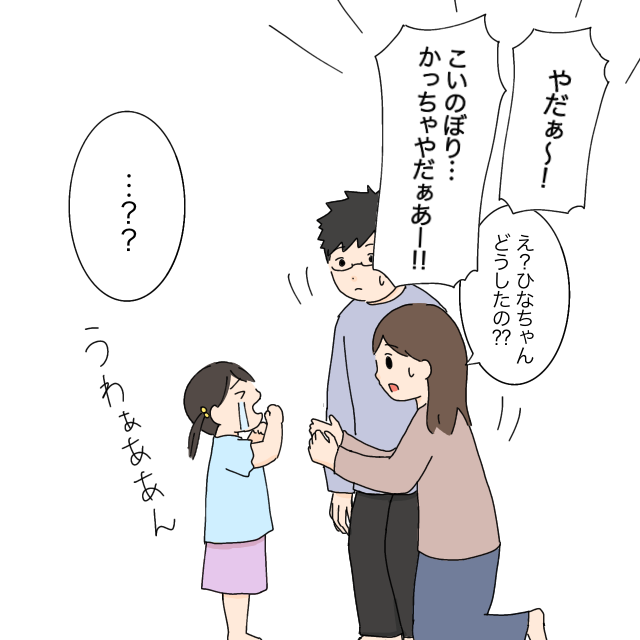ひなは急に「うわぁあああん!!やだぁ~!こいのぼり・・買っちゃやだぁあー!!」と泣き出してしまいました。何が起こったのかわからず慌てる私たち。「ひなちゃん?どうしたの?」と聞いても「買っちゃやだ」と泣くばかり。困ってしまいました。