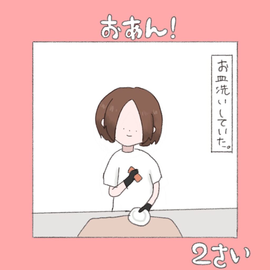 お皿洗いをしていたら、おあん!やーや!としきりに話すみぃくん。