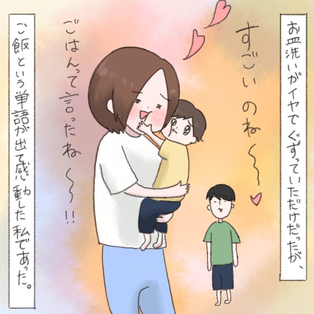 それで合っていたのですが、みぃくんがご飯を嫌がる理由はお母さんがお皿を洗っているのが嫌だったみたいです。