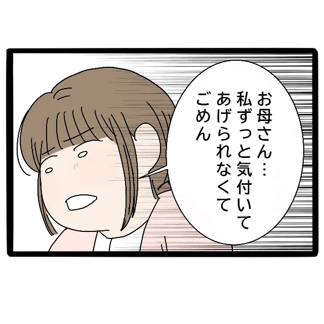 そして、「お母さん・・私ずっと気づいてあげられなくてごめん」と謝りました。ずっと一緒に暮らしていたのに、母が祖母から嫁いびりを受けていたことに私は全く気付いてあげられませんでした。この前よっちゃんに聞いて初めてそれを知った私は自分を責めました。