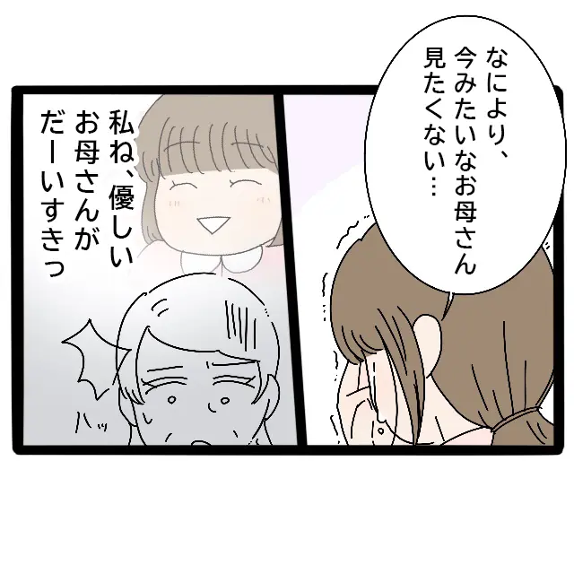 私は昔の母の姿を思い出しながら、「なにより、今みたいなお母さん見たくない・・」と涙ながらに今の気持ちをまっすぐ伝えました。私は優しいお母さんが大好きでした。