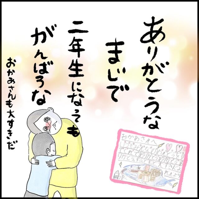 泣くー!これは泣きます!!レンくんがとっても優しい子でお母さんが大好きだということが伝わります!でも・・・レンくんの係の仕事内容がとっても気になりますね(笑)