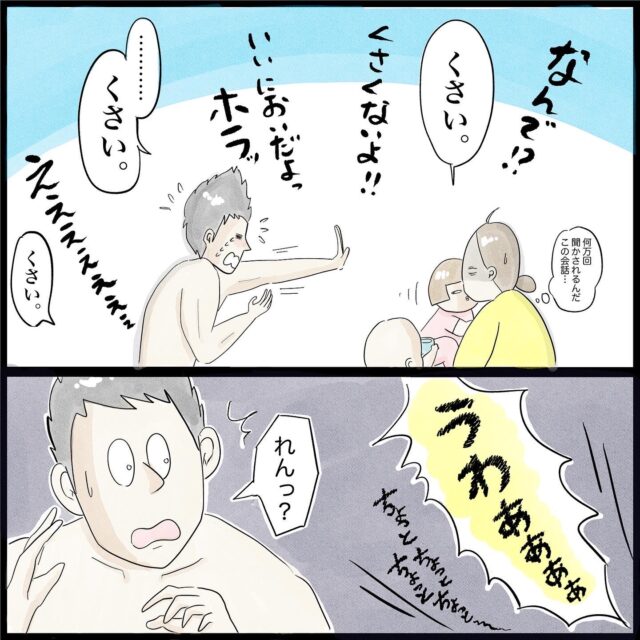 7歳長男レンくん、4歳長女すいちゃん、1歳次男ヨウちゃん、3人のお子さんのママであるhanemiさんから、[ニオイのお話前編]ヨウくんのスメルに続き、今回はパパさんのにおいについてのお話です。あはは・・パパさんのにおい、3きょうだいはどんな風に感じているのでしょうか?