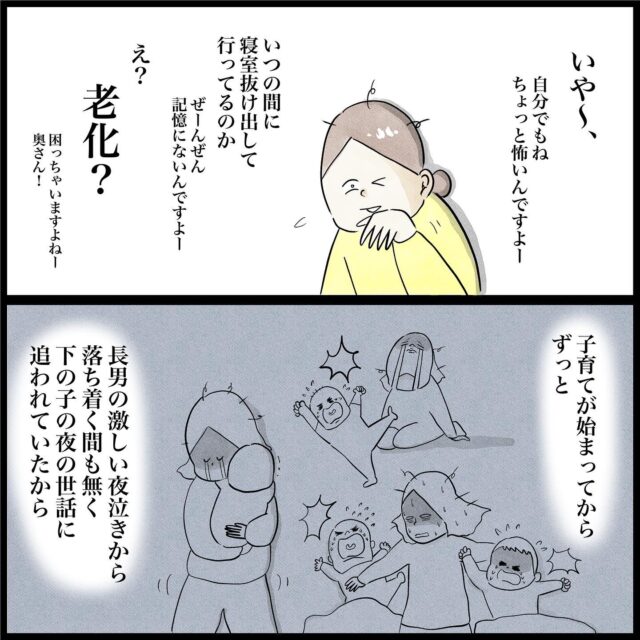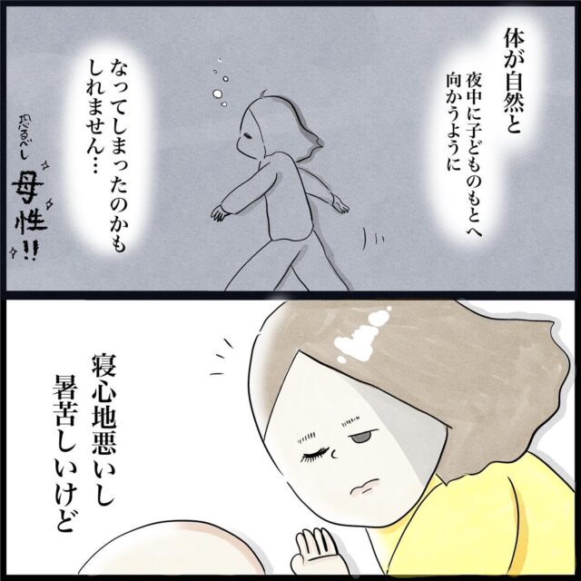 7歳長男レンくん、4歳長女すいちゃん、1歳次男ヨウちゃん、3人のお子さんのママであるhanemi(@hanma_ma)さんから、夜泣きが終わった後のhanemiさんの夜間行動についてのお話です。母性の恐ろしさを痛感するこの行動!共感の声がすでに・・!!