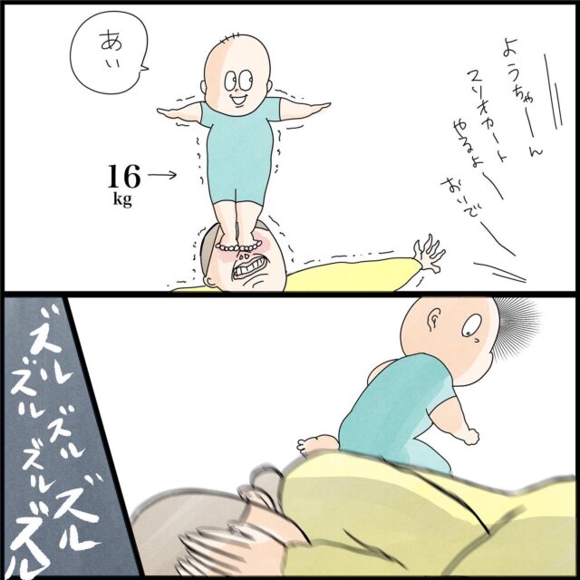 ヨウくん・・・(笑)。ママのからだがもはや遊具と化していますよー!!