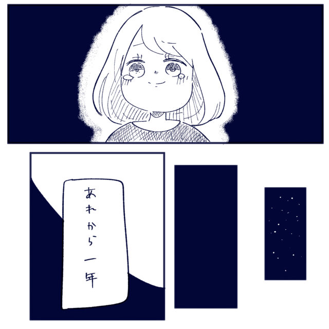 なかなか寝ないみーちゃんとはーくんの泣き叫ぶ声に耐えきれず、何もできなくなってしまった和栗ぐりさん、すると、帰ってきたご主人が「今日は一緒に観に行こう」と誘ってくれ、家族全員で星を観に行くことに。みんなで見上げる星空に圧倒されながらも、みーちゃんとパパはいつも何を話しているんだろう?と思うのでした。