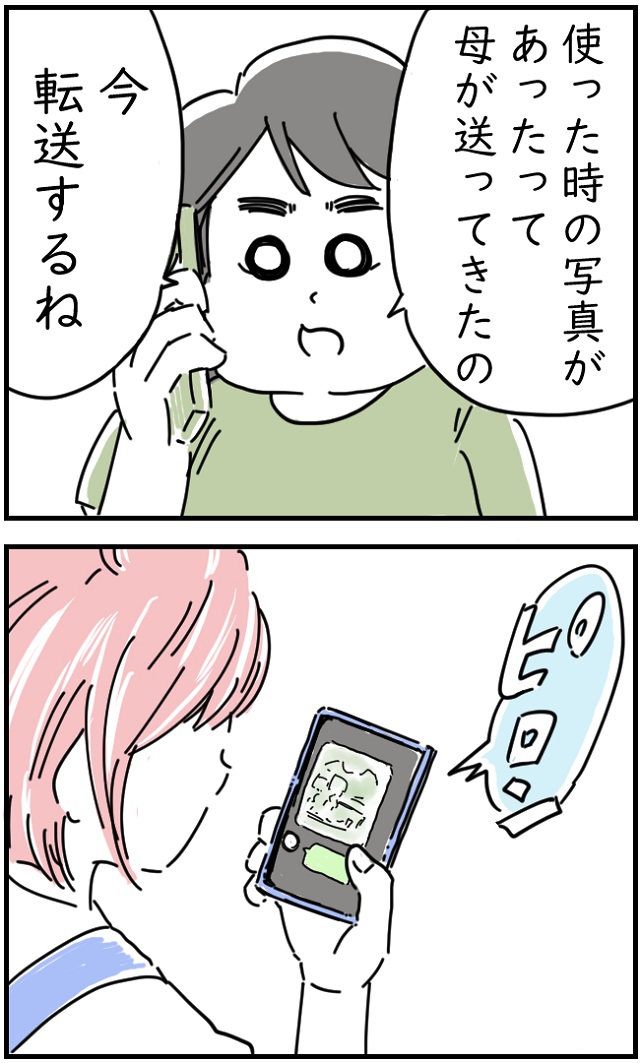 「でね、その敷物なんだけど・・前に使った時の写真があったって母が送ってきたの。今転送するね」