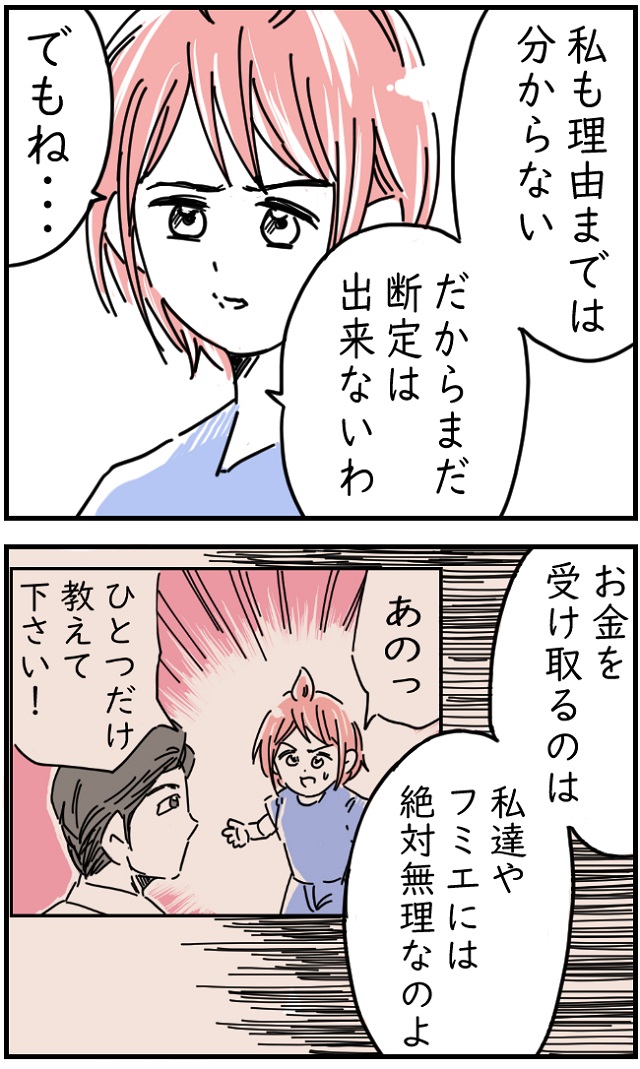 「お金を受け取るのは私たちはフミエには絶対無理なのよ。」