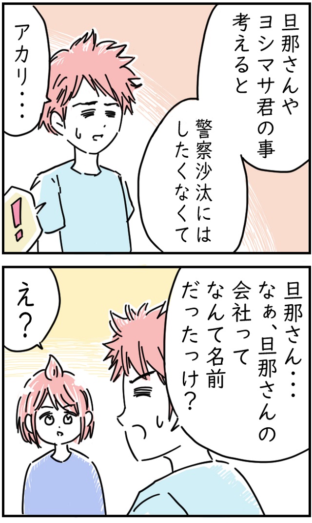 「旦那さんやヨシマサ君のこと考えると、警察沙汰にはしたくなくて・・・」