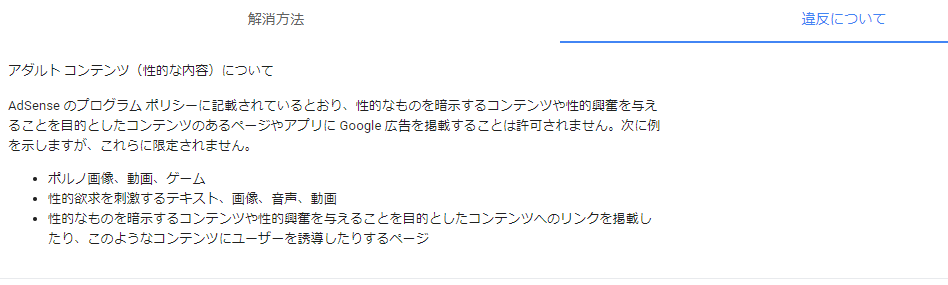 AdSense のプログラム ポリシーに記載されているとおり、性的なものを暗示するコンテンツや性的興奮を与えることを目的としたコンテンツのあるページやアプリにGoogle広告を掲載することは許可されません。次に例を示しますが、これらに限定されません。◎ポルノ画像、動画、ゲーム