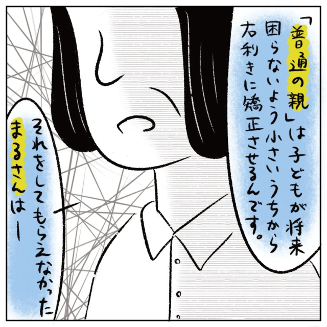 さらに先生は「『普通の親』は子どもが将来困らないよう小さいうちから右利きに矯正させるんです。それをしてもらえなかったまるさんは』