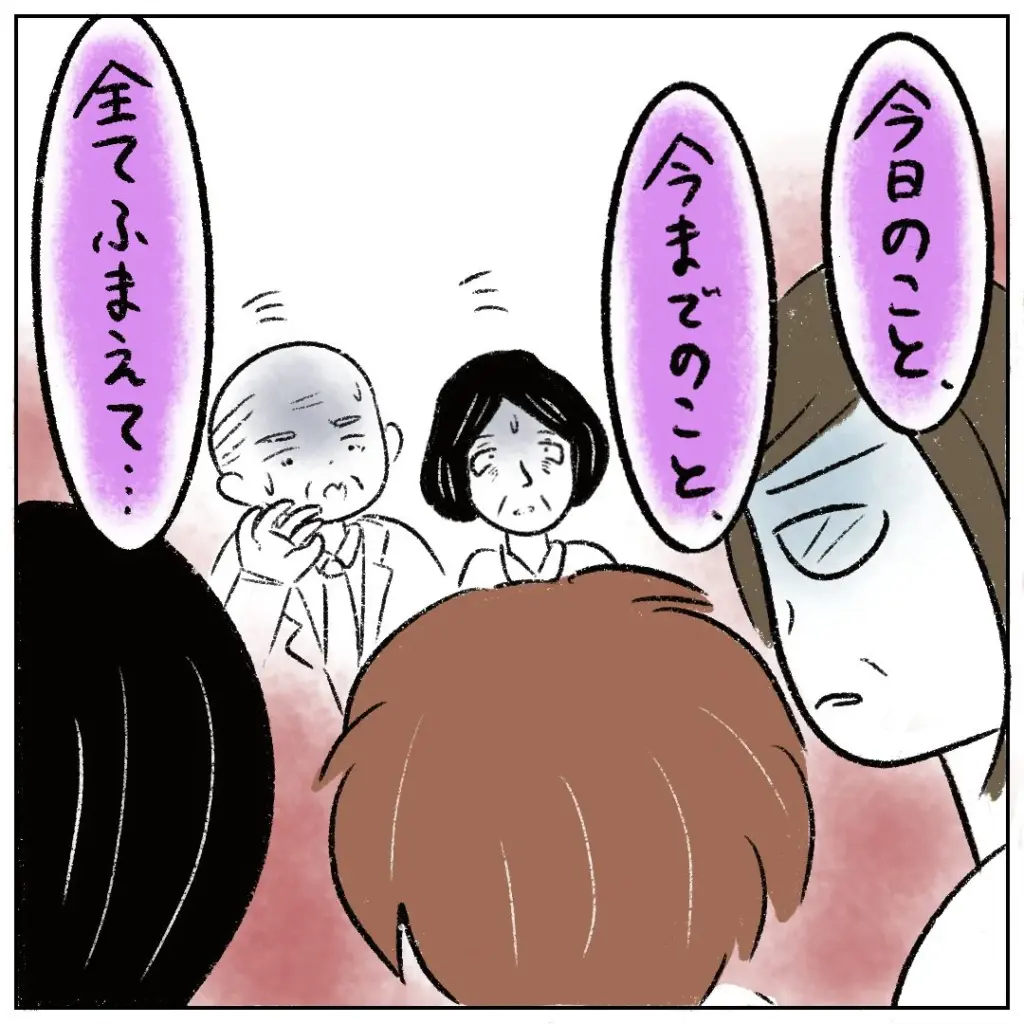 教室に入ってきた2人の女性は、お母さんが事前に話しを通していたPTAの役員でした。「実はこっそり外で全て聞かせてもらってました」と厳しい表情で口を開いたPTA会長。これまでの性根先生の悪行も、保護者に対しての暴言も、全てが効かれていたのです。